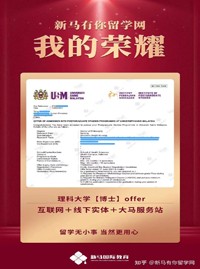 導(dǎo)師優(yōu)勢:馬來西亞研究生部資深顧問,善于挖掘申請人特點,快速、準(zhǔn)確制定個性化留學(xué)申請方案;積累了大量的高端申請成功案例,深受學(xué)生和家長的信賴。